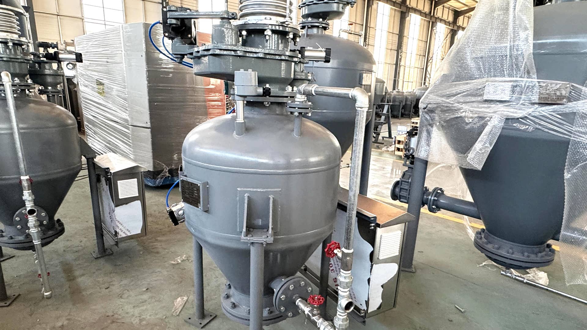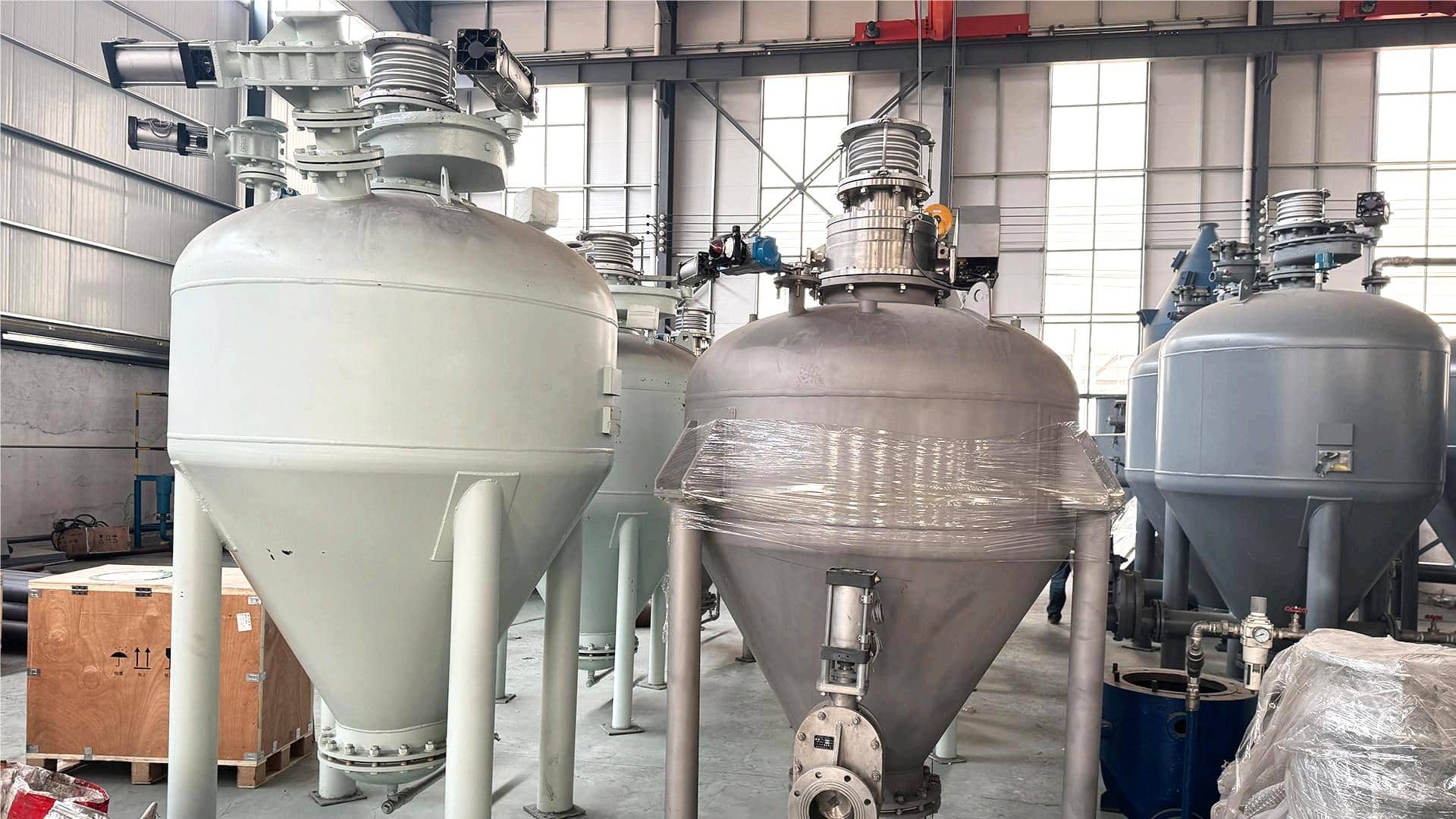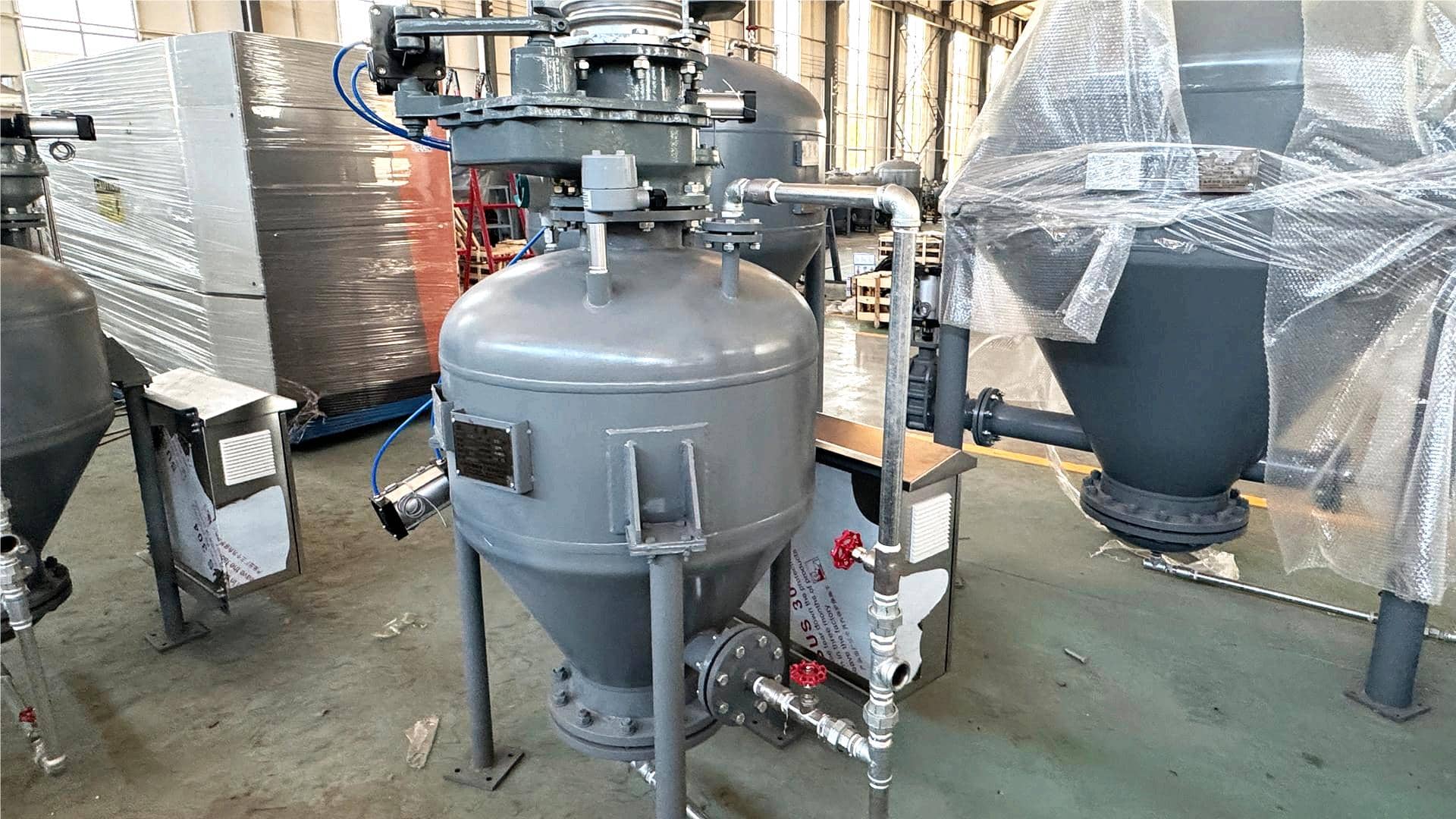 亚硝酸钙作为一种适用于气力输送的粉状物料,具有颗粒细小、密度小、流动性好且无明显粘结性的特点,非常适合气力输送的要求,并且密闭输送质量优良。气力输送利用压缩空气或真空作为动力源,在密闭管道中形成气流带动物料,通过分离器实现气固分离。根据输送压力与动力形式,气力输送可分为负压吸送式、正压压送式和混合式三种类型,而气固混合浓度多采用稀相输送方式。