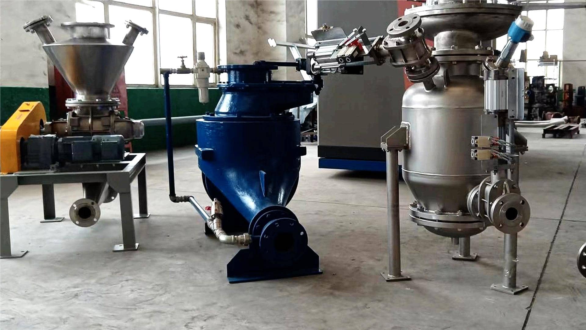 二氧化硫粉因其颗粒细小、密度小、流动性好且无明显粘结性,非常适合用于气力输送。这种输送方式以压缩空气或真空为动力源,通过密闭管道形成气流带动物料,并借助分离器实现气固分离。根据输送压力与动力形式,气力输送可分为负压吸送式、正压压送式和混合式,而气固混合浓度多采用稀相输送,以保证输送质量和效率。