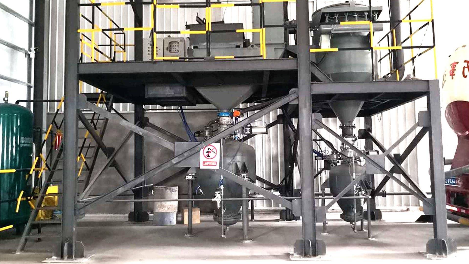 干粉因其颗粒细小、密度小、流动性好且无明显粘结性,完全适用于气力输送,该输送方式以压缩空气或真空为动力源,在密闭管道中形成气流带动物料,经分离器实现气固分离。气力输送根据输送压力与动力形式可分为负压吸送式、正压压送式和混合式,通常采用稀相输送以实现气固混合。